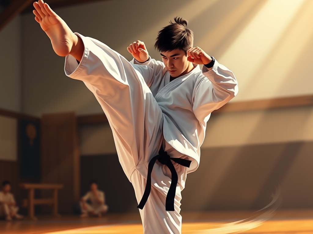 Taekwondo is a famous martial art from Korea. People know it for its high kicks and agility. This martial art uses high, fast kicks and many striking techniques. It is both spectacular to watch and effective in combat.